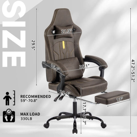 Gaming Chair, Video Game Chair with Massage Lumbar Support and Footrest, Comfortable Ergonomic W2367P288670
