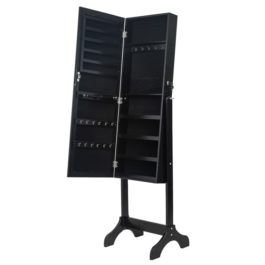 Non Full Mirror Wooden Floor Standing 4-Layer Shelf Jewelry Storage Adjustable Mirror Cabinet *Black 31653593