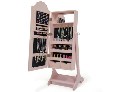 Introducing the charming Pink Love Hearts Children's Accessory Mirror Cabinet, a delightful and functional piece designed to organize your little one's treasures. Crafted from high-quality painted MDF, this elegant cabinet features a sweet pink color adorned with lovely heart motifs, creating a cheerful focal point in any child's room. The practical design includes a single door and a built-in shelf for versatile storage of hair accessories, jewelry, and keepsakes. With compact product dimensions of 31.50*30.00*116.00cm (9kg) and secure shipping dimensions of 102.00*35.50*18.00cm (9.8kg), it arrives ready to bring both order and whimsical charm to your child's space.