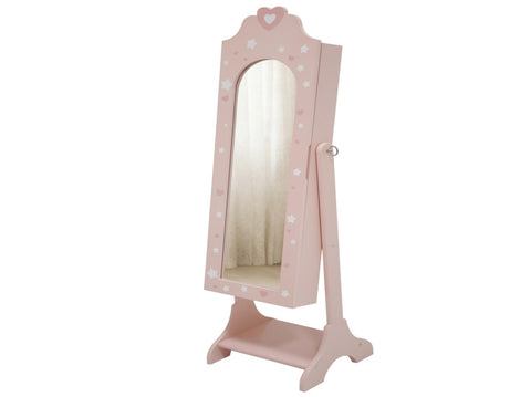 Pink, heart-shaped, MDF, spray-painted, 1-door, 1-shelf children's jewelry and mirror cabinet 11868552