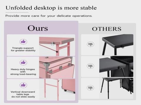 Solid and Stable: The tabletop is linked to the case with heavy-duty hinges and has triangular supports that won't wobble. Provide more care for your delicate operations. Rugged materials for longer life