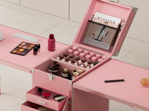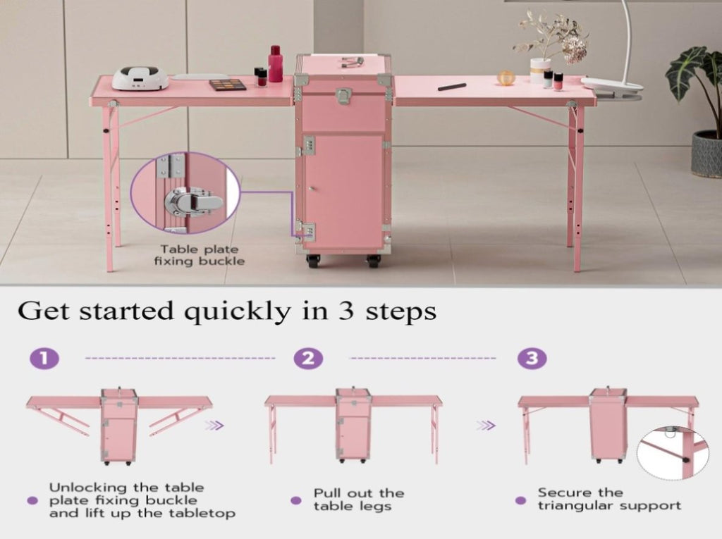 More Spacious Desktop: The cosmetic case has 2 foldable tabletops on both sides. Provides space for 4 people to get their nails done. You can also place more items on the desktop for easy access