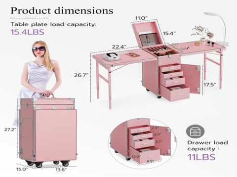 Easy to Carry Around: In 3 easy steps you can put the desktop away. Lockable wheels for easy mobility. With the newly added trolley bar and carrying handle, you no longer have to worry about the case being too heavy. Ideal for nail technicians to take when they go out to work