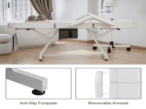 • 【Widely Used】Perfect for massages, facials, eyebrow waxing or threading, tattoos, pedicures and other salon needs. The spa bed are easy to install, detailed installation steps are included in the manual, all accessories and set-up tools are included in the package.