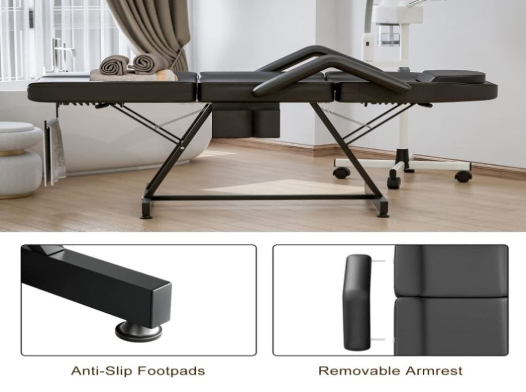 • 【Widely Used】Perfect for massages, facials, eyebrow waxing or threading, tattoos, pedicures and other salon needs. The spa bed are easy to install, detailed installation steps are included in the manual, all accessories and set-up tools are included in the package.