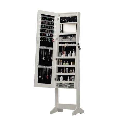 Standing Jewelry Cabinet Armoire with Full Length Mirror, Lockable Storage Cabinet, Interior Mirror, W3406P340443