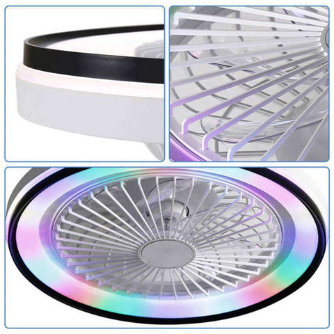 19 Inch RGB Dimmable Led Enclosed Ceiling Fan with Light Flush Mount Bladeless 6 Speed Remote W934P262275