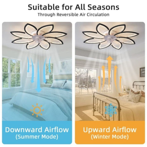 Reversible Inverter silent copper core motor:35.4in Flush mount ceiling fan with DC reversible motor allows you to switch the air circulation mode from downward to upward in different seasons. Also this Bladeless ceiling fan has a silent fan blade, so you can use it while you sleep, and is suitable for indoor spaces such as bedrooms, living rooms and dining rooms etc.