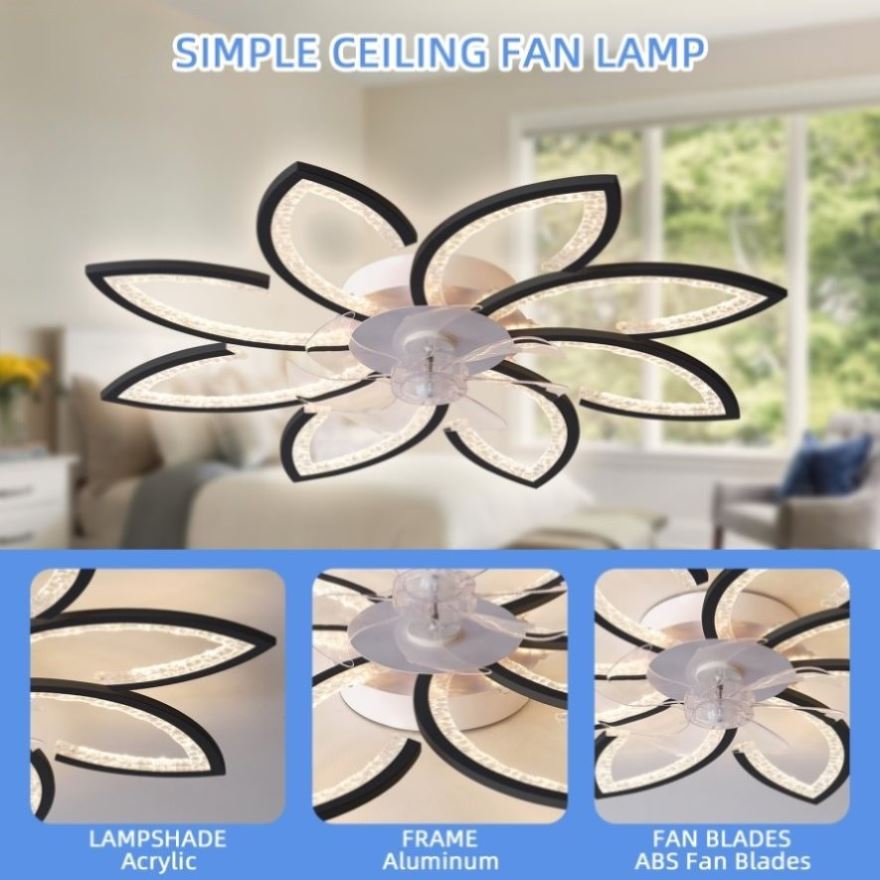 Ceiling fan with remote for APP:Low profile ceiling fan has a reverse function , 6 wind speeds,2h timing,and all the functions can be operated by the hand-held remote or APP.The fan or illumination can be turned on separately,you can gradually adjust the color temperature (3000-6000K) of the ceiling light.The energy saving stepless dimmable light source can save more than 80% of energy.