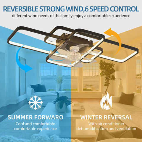 • Remote & APP Control: The ceiling fan lights has a reverse function, 6 wind speeds,1/2/4h timing, and all the functions can be operated by the hand-held remote or APP.