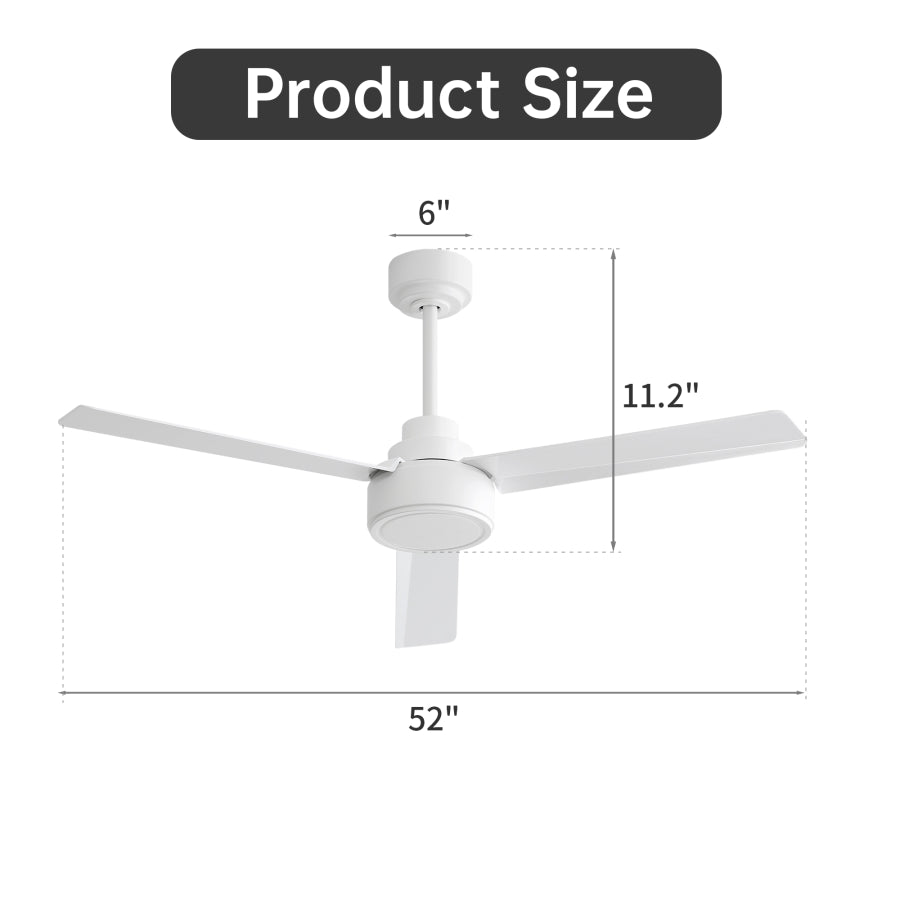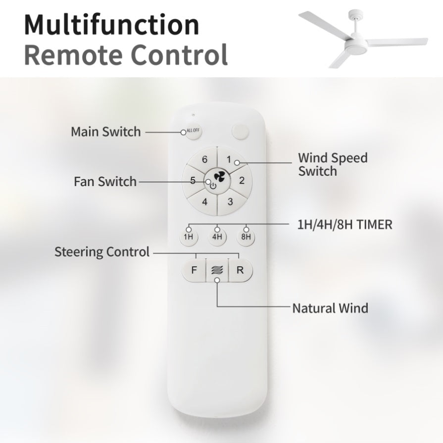Remote-Controlled Convenience: The 52" ceiling fan comes with a remote control, offering 6 wind speeds, timer adjustment, and reversible blade design for year-round comfort.