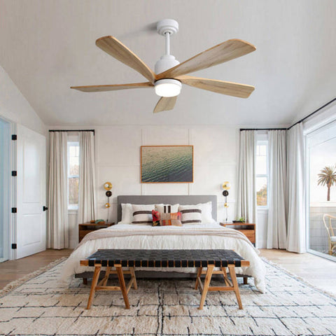 52 Inch Ceiling Fan With Dimmable LED Light 5 Solid Wood Blades Smart Remote Control Reversible DC W934P200090