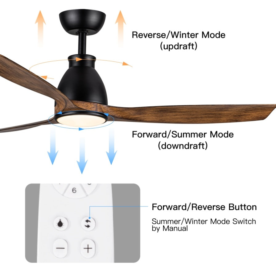 The YUHAO 52 in. solid wood white ceiling fan offers chic, minimalist style. It features an integrated LED light kit with white shade, which adding to the energy and cost-saving benefits of the ceiling fan. Add this ceiling fan to any large room, from bedroom to living room, and enjoy year-round comfort. it complement traditional and modern decors. It's easy to get the perfect settings with the remote, which controls the speed functions and independent light. The 18W light is energy-efficient and dimmable