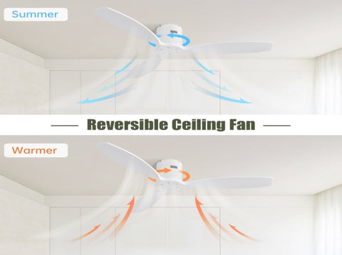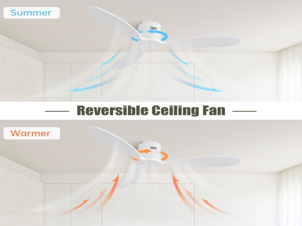 Reversible Airflow: The ceiling fan allows you to switch between downward airflow for summer and upward airflow for winter. This feature helps reclaim lost heat from the ceiling, reducing energy costs and providing a comfortable environment throughout the year.