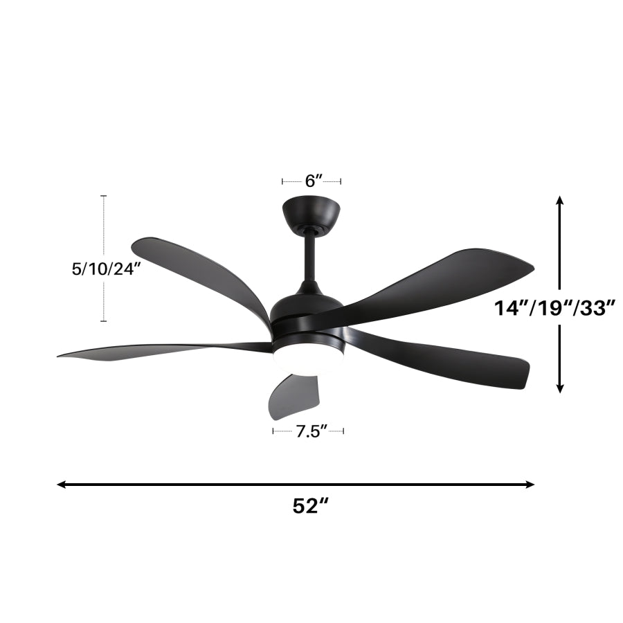 Easy Installation: With a 52-inch diameter and compatibility for ceilings with a maximum slope of 15 degrees, our ceiling fan is designed for easy installation. Most functional components come pre-assembled, allowing you to save on electrician costs and complete the installation on your own. Refer to the user manual for guidance.