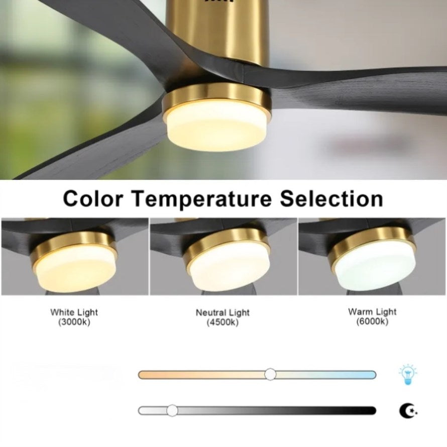 The ceiling fan adopts an 18W LED light source with a lighting memory function. Compared with ordinary light sources, LED light sources are more energy-efficient and have a longer lifespan. There are 3 color temperatures to choose from (3000K/4500K/6000K).