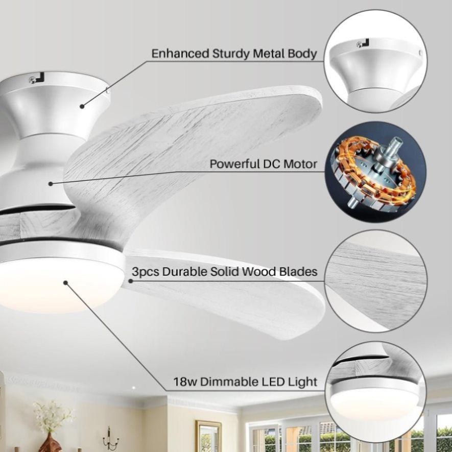 Upgraded 3 Color LED Change Light: Experience the latest in lighting technology with intelligent dimmable LED. The 18W color temperature is fully adjustable, providing ambient lighting that's closer to the real and original color of the object. Smart memory technology ensures the fan retains the last light setting, offering convenience and efficiency.