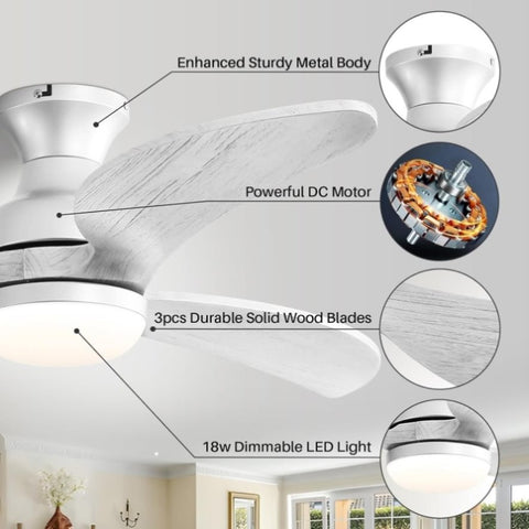 52-inch modern high quality ceiling fan is simply and beautifully designed to complement any room decor, perfect for those who want to add a touch of sophistication and elegance to their home or outdoor space, suitable for patio, gazebo, living room, bedroom various places. Also features high-quality solid wood leaves that are both durable and long-lasting.