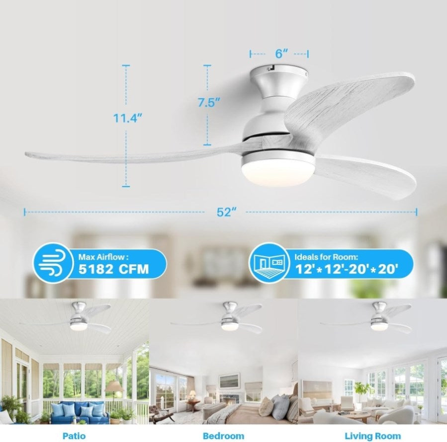 This ceiling fan features a high-capacity pure copper DC motor, delivering powerful airflow and ensuring years of quiet performance. With its durable and modern design, this 52-inch ceiling fan is perfect for medium to larger-sized rooms ranging from 150-320 sq.ft.