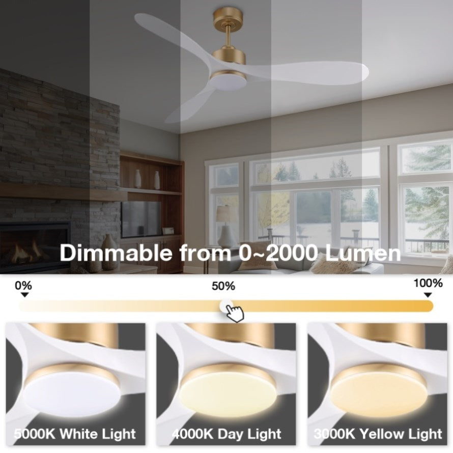 【Easy to Install&8 Timers】 52 Inch modern white gold ceiling fan with lights and remote control, made of strong and durable ABS plastics, add beauty as home decor. With delay auto-off timer in 0-8 hours, lighting & ceiling fans bring you sound sleep.