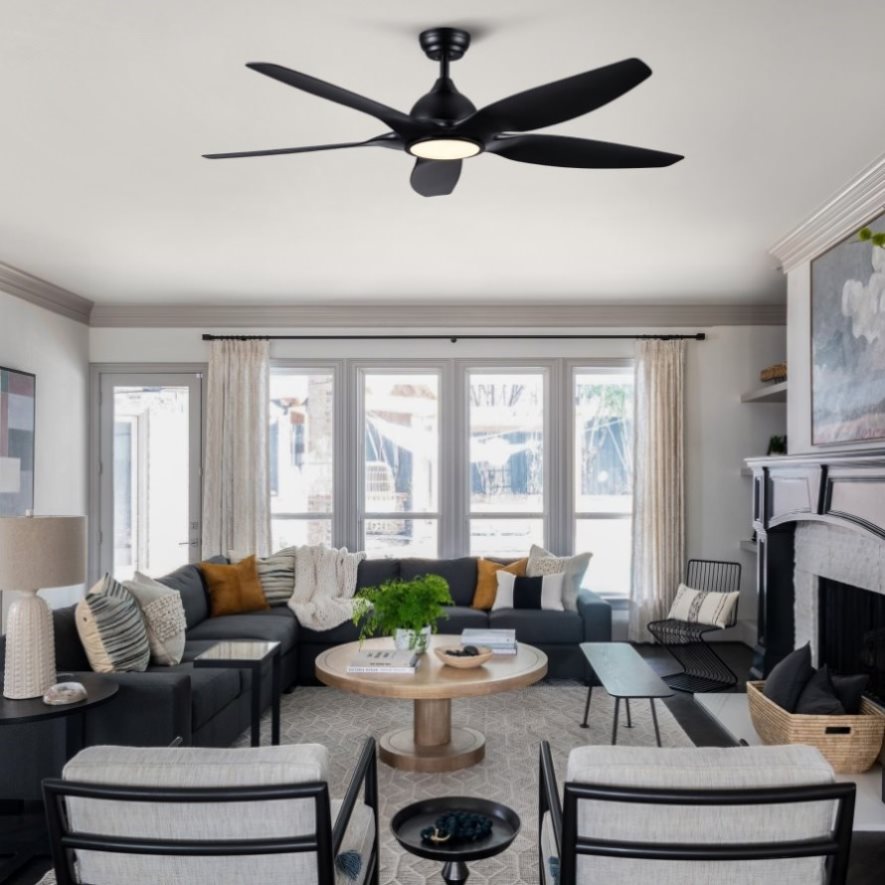 Modern fan with technical design to cool down your room. Integrated 24-Watt LED module with color changing technology. High-quality motor that delivers powerful air movements and quiet performance. This ceiling fan would be perfect for your kitchen, dining room, living room, bedroom and indoor space.