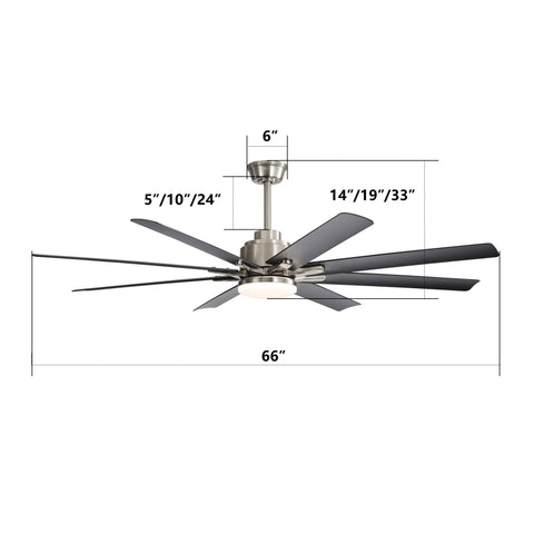 66 Inch Large Ceiling Fan With Dimmable Led Light 8 ABS Blades Smart Remote Control Reversible DC W882P146893