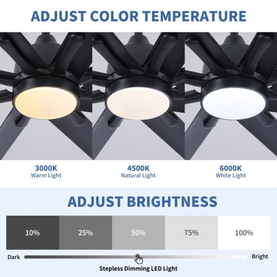 This 84 in. industrial ceiling fans keep your space cool by YUHAO Brand combines form features a considerate design that will complement most spaces. Hang it in a living area or family room to keep things cool in the summer time and even reverse the motor to keep it warm in the winter. The integrated 24 watt LED light kit offers versatile lighting options. Choose from 3,000K, 4,000K or 5,000K light output options all conveniently controlled with the included remote control. The 84 in. ceiling fan is energy-efficient and easy to install, so you can start enjoying the comfort.