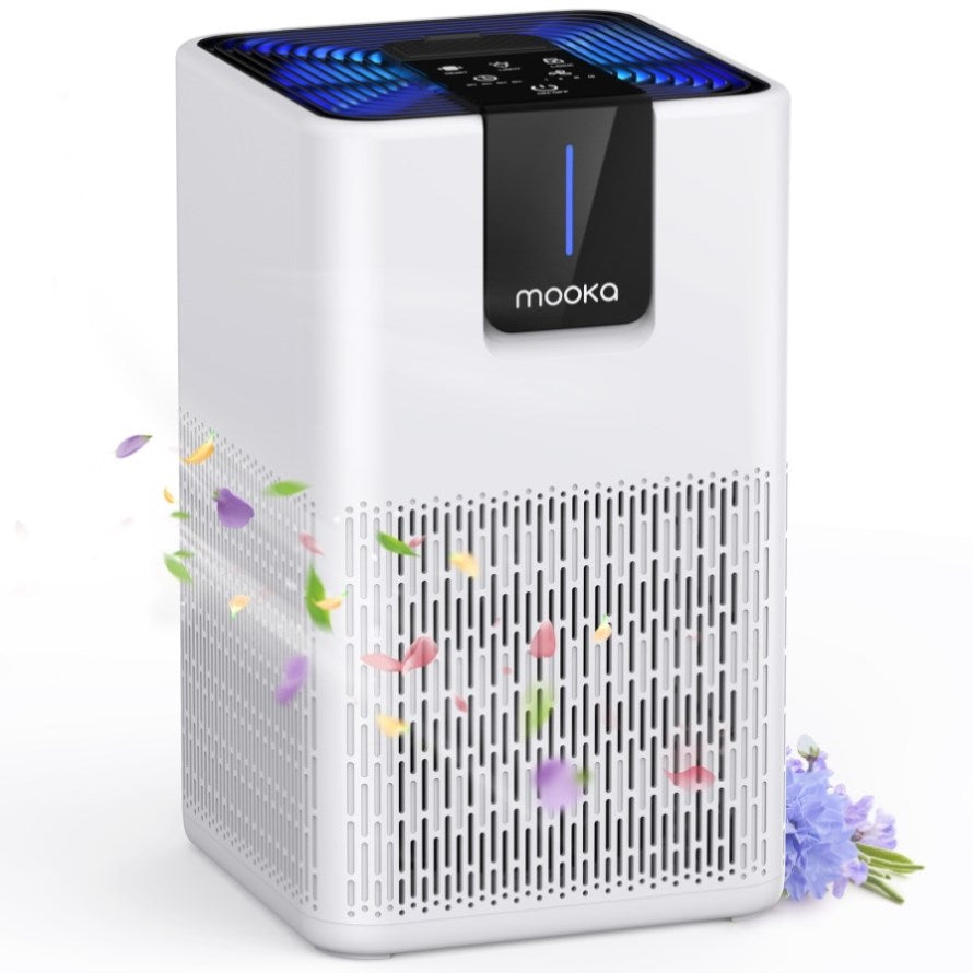 MOOKA indoor air purifier featuring an essential oil diffuser for soothing fragrances