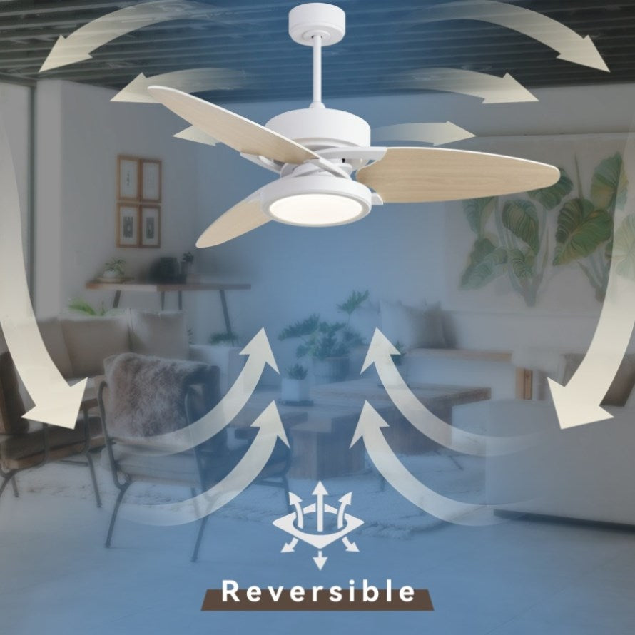 ·The fixture is perfect for both summer and winter, as it can be reversed to circulate stagnant air near the ceiling, keeping the room comfortable all year round.