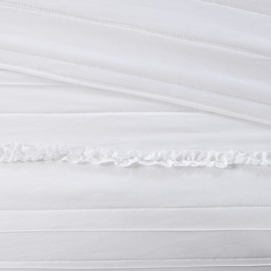 4 Piece Microfiber Reversible Ruffle Quilt Set with Throw Pillow White Full/Queen B03597434