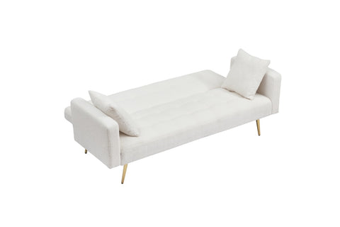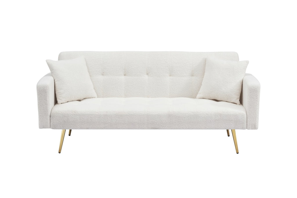 71.7 - inch Beige Teddy Fleece Sofa Bed, accompanied by two luxurious throw pillows for enhanced W3356P298490
