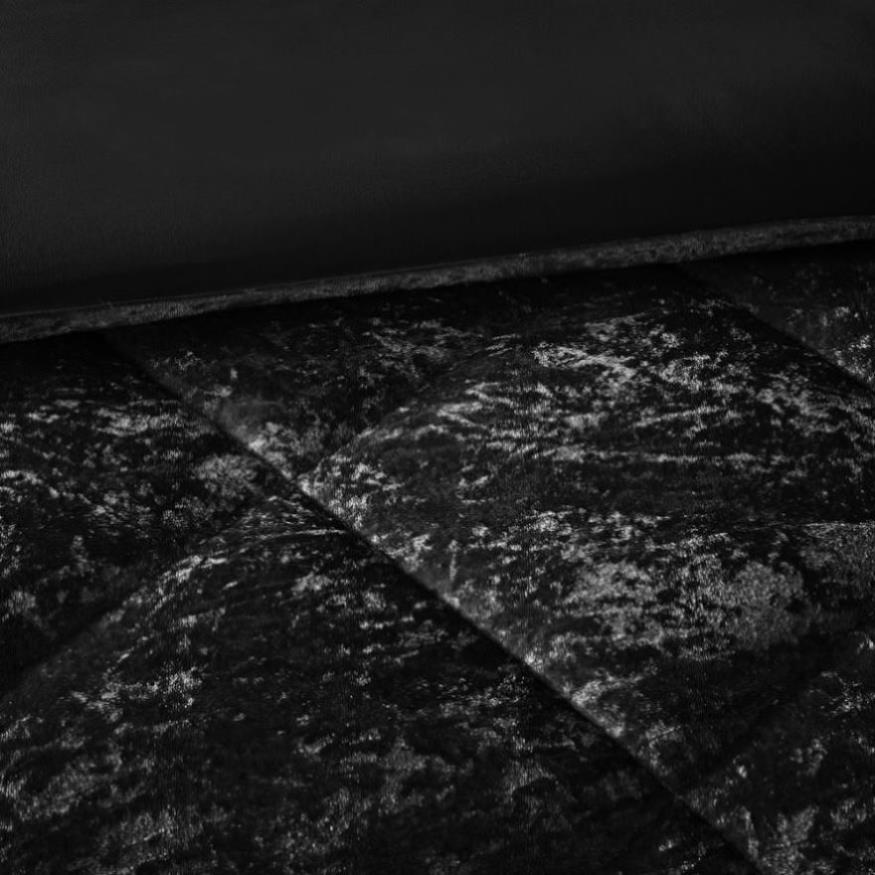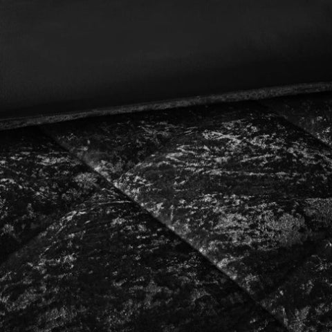 Luxurious crushed velvet comforter set features diamond quilting on top of the bed
