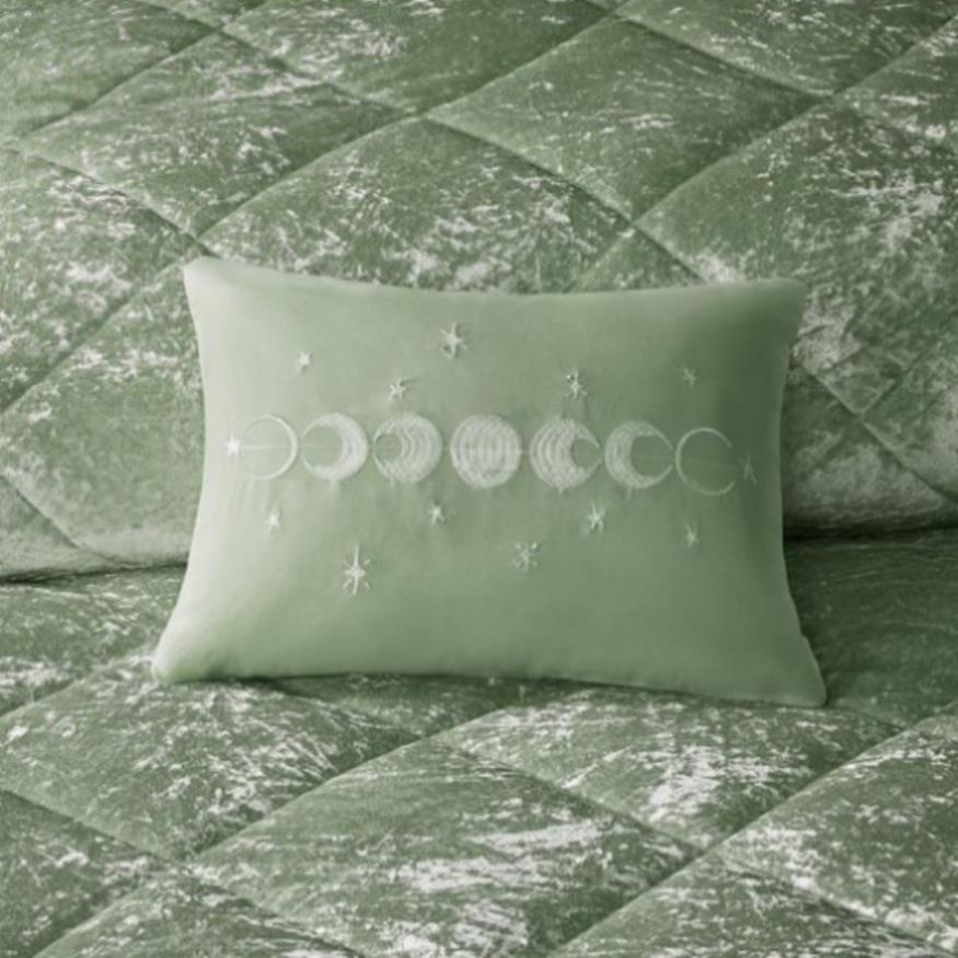 Comforter/sham: 100% polyester crushed velvet fabric quilting on face, 100% polyester microfiber reverse; sham has narrow flange and overlap opening at back; comforter has polyester fill Pillow: 100% polyester cover with embroidery on face, polyester fill