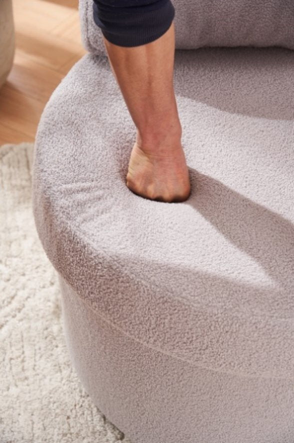 Product Pomposition:Soft Teddy Fabric Material+Foam Filled+Wooden Frame+3 Throw Pillows+Storage+Black Point Round Swivel Base+Upholstered;