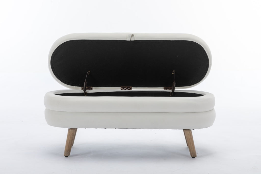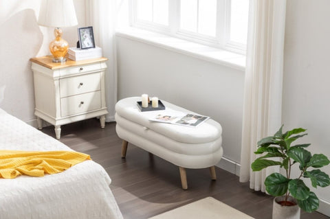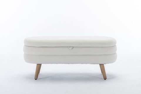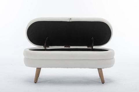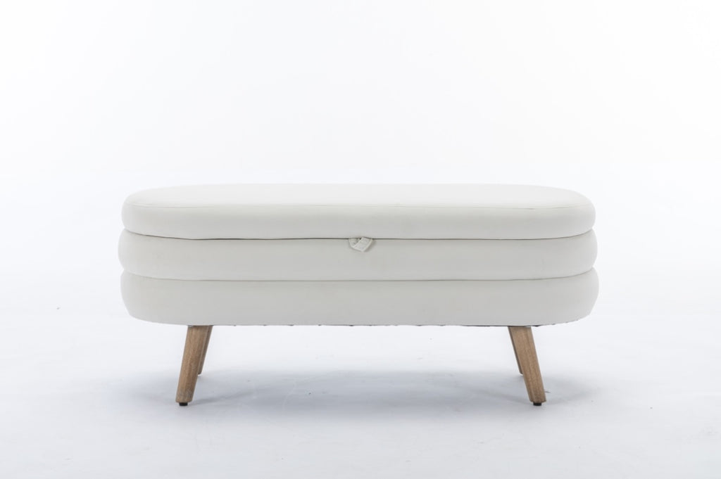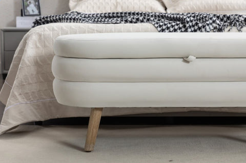 036-Velvet Fabric Storage Bench Bedroom Bench With Wood Legs For Living Room Bedroom Indoor,Ivory W527121987