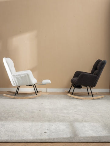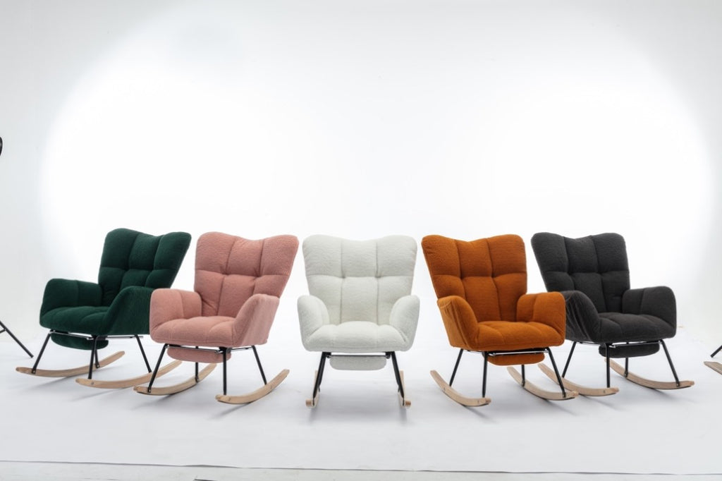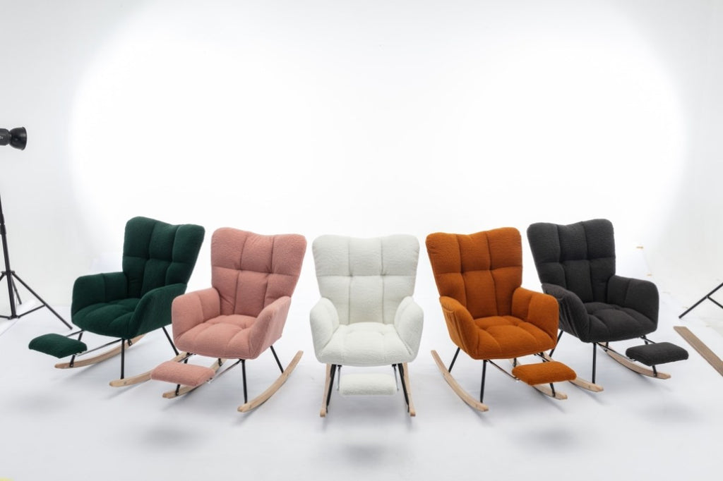 053-Teddy Fabric Rocking Chair With Adjustable Footrest,Pink W527P151444