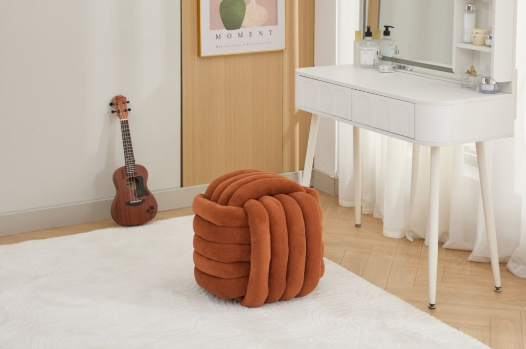 060-Chenille Fabric Modern Knot Design Ottoman Makeup Stool Footstool, Comfortable and Stylish Seat W527P239022