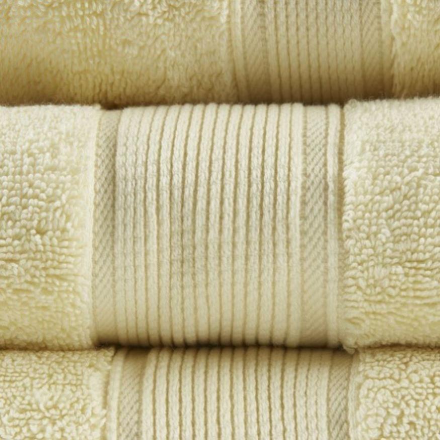 Provide a fresh update to your bathroom with our luxurious Madison Park Signature 800GSM Cotton 8PC Bath Towel Collection. This spa-like quality towel set is made of premium long staple cotton that is highly absorbent and creates a luxuriously soft feel, while the double ply loop construction increases thickness, absorbency, and ensures less lint. Each towel is finished with a silvadur antimicrobial treatment providing built in freshness protection, inhibiting growth of odor causing bacteria, and keeping linen newer, longer. Active for multiple washes, this treatment delivers long-lasting durable odor protection performance. In addition, these towels are also made in green by OEKO-TEX certified, meaning they do not include any harmful substances or chemicals while also using sustainable processes and socially responsible working conditions, for the best in quality comfort and wellness. Finished with double-stitched side hems for long lasting durability, these towels are available in a variety of colors; to easily match your decor with a complimenting color or mix and match to create a distinctive style. Set includes: 2 generously oversized 30x54" bath towels, 2 standard 16x28" hand towels, and 4 standard 13x13" wash towels. Coordinate bath sheet set in selected colors, is available and sold separately.
