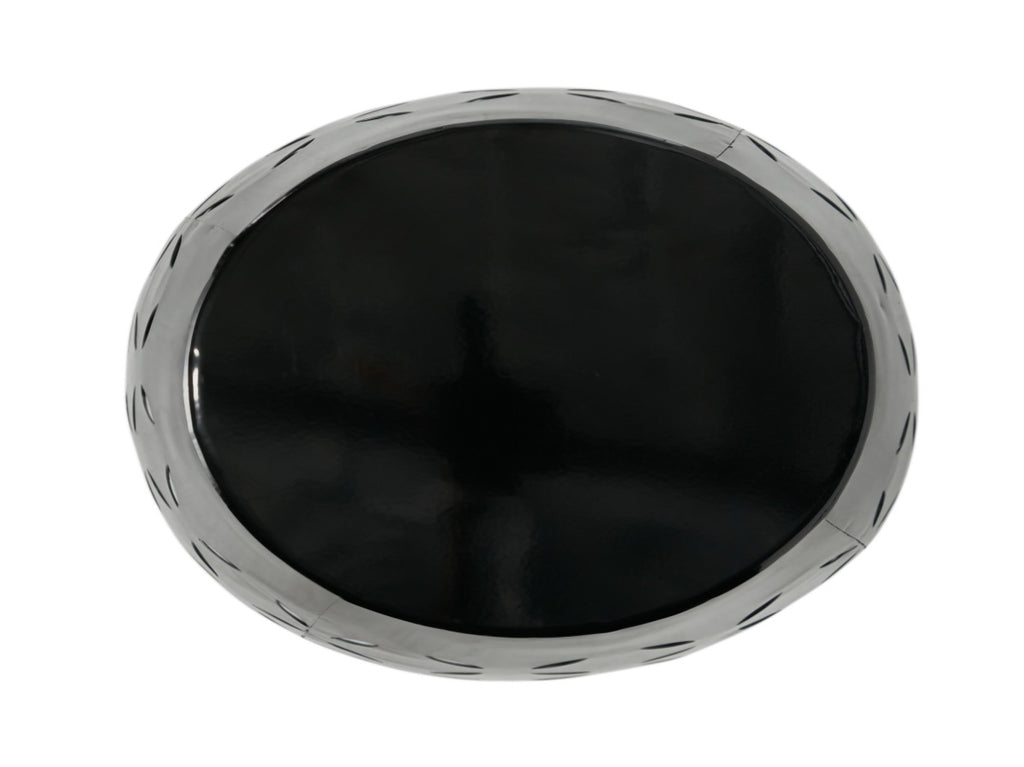 DESIGNE DETAILS:The table's curved profile and intricate cutouts create dynamic visual interest from every angle, while the weighted base ensures stability even on uneven surfaces. The dark finish provides sophisticated contrast against both natural and urban backdrops.