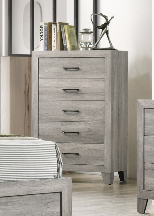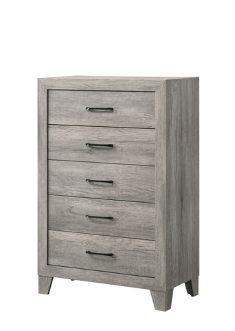 1pc Contemporary Five-Drawers Chest Bed Side Cabinet Wooden Furniture Rustic Gray Color B2741P334815