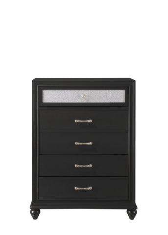 1pc Luxury Glam Five Drawer Chest with Two-Toned Drawer Black Finish Shimmering Accents B011P234293