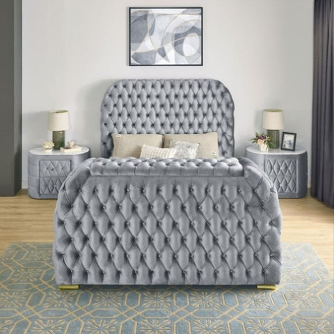 Description:-This Nightstand is a sleek oval shape and modern piece, featuring a gray finish that adds elegance to any bedroom. It offers two drawers for storage, decorative metal knobs, and a sturdy build for lasting durability.