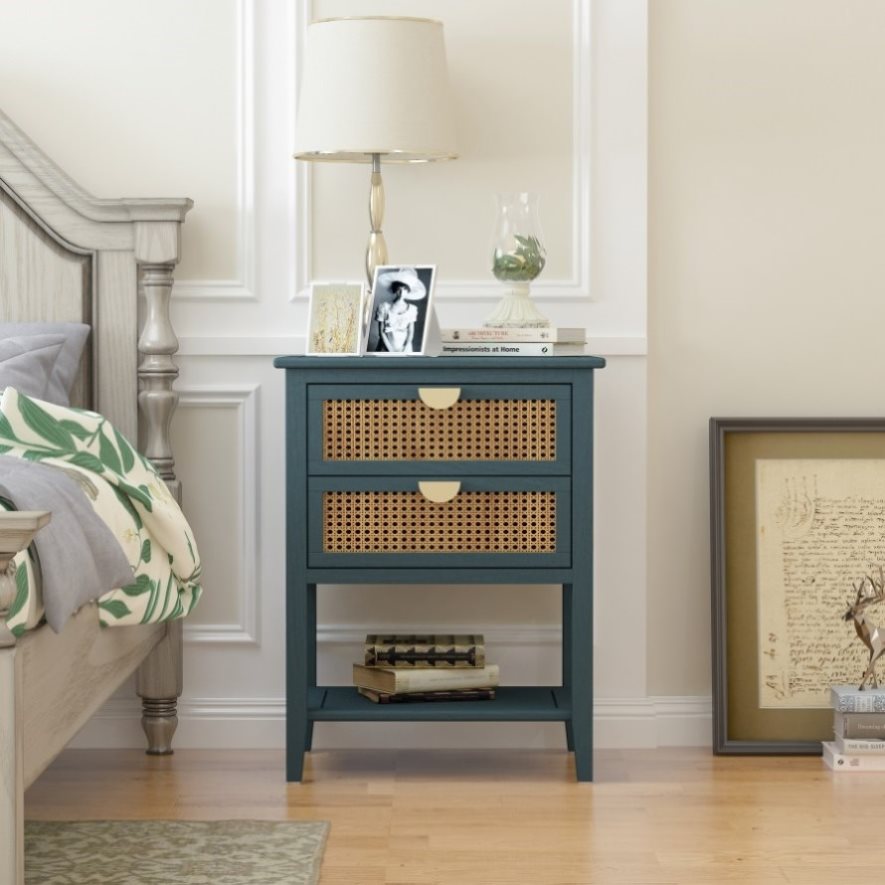 2 Drawer Side table,Naturel Rattan,End table,Suitable for bedroom, living room, study W68858072