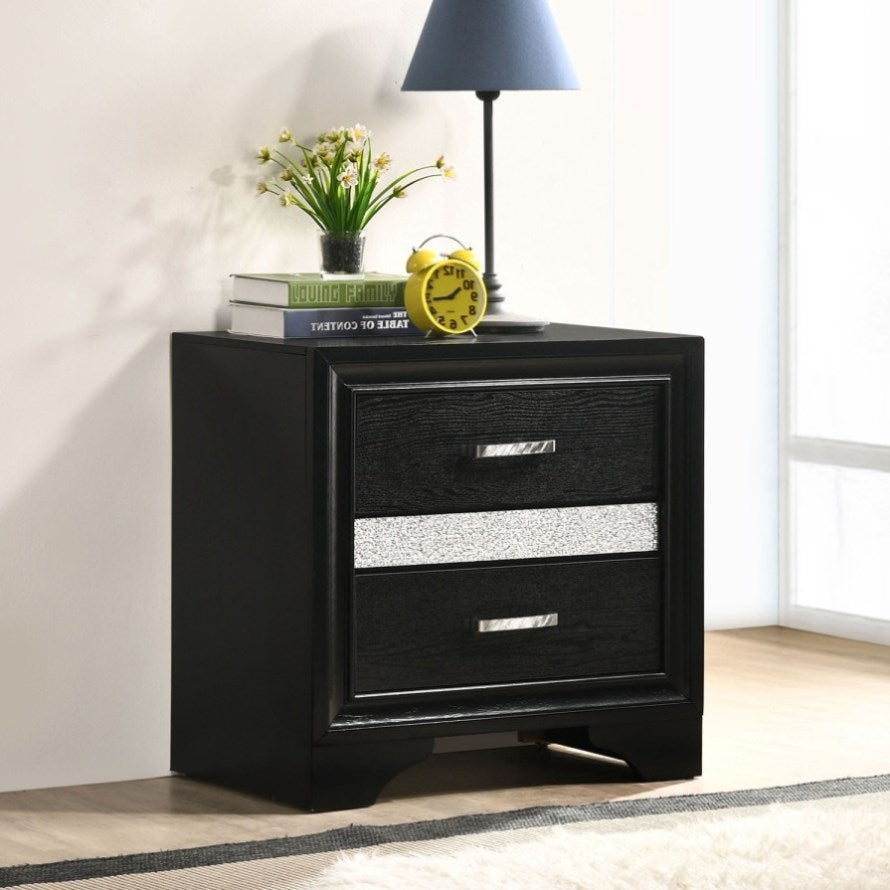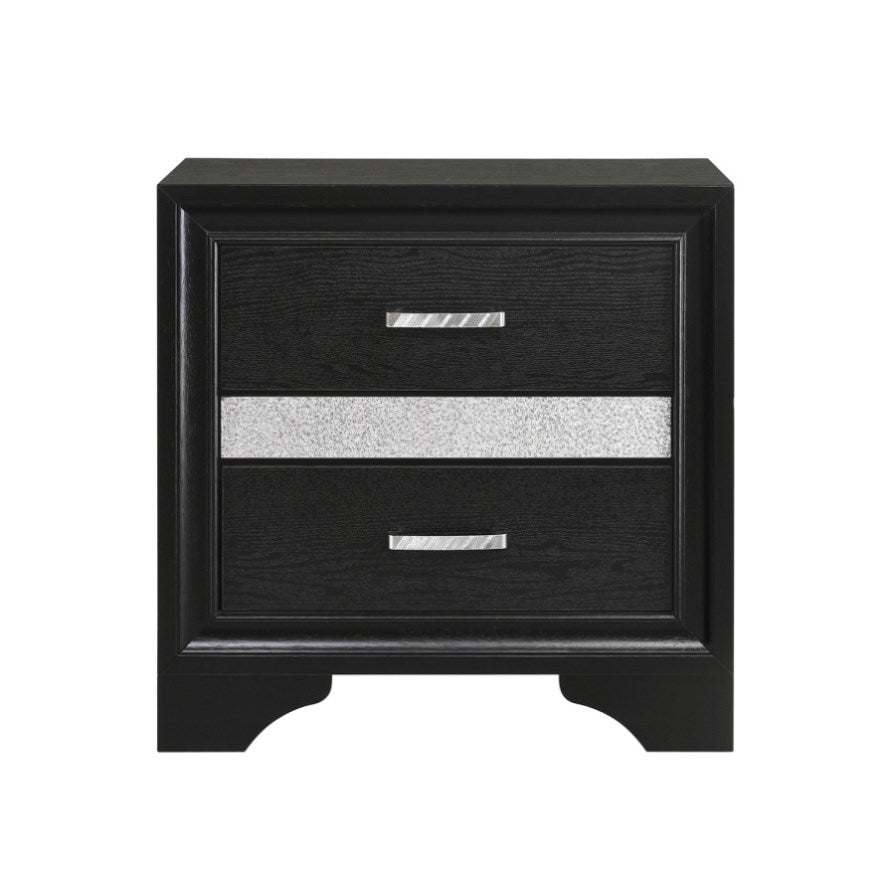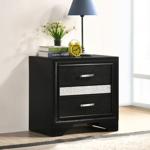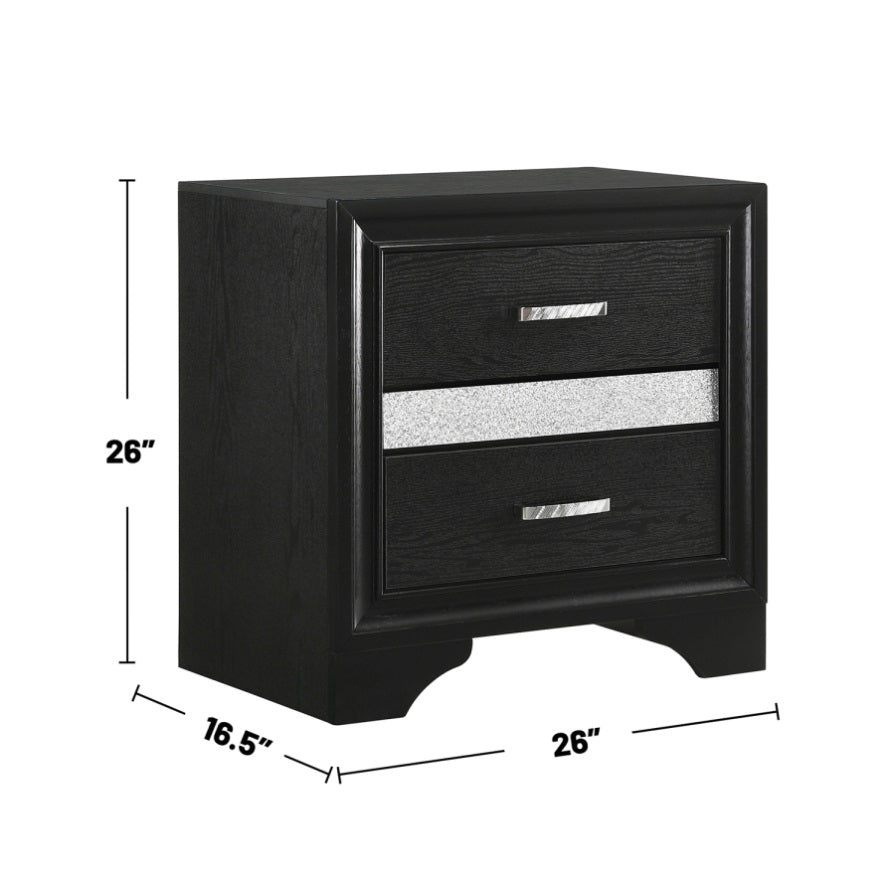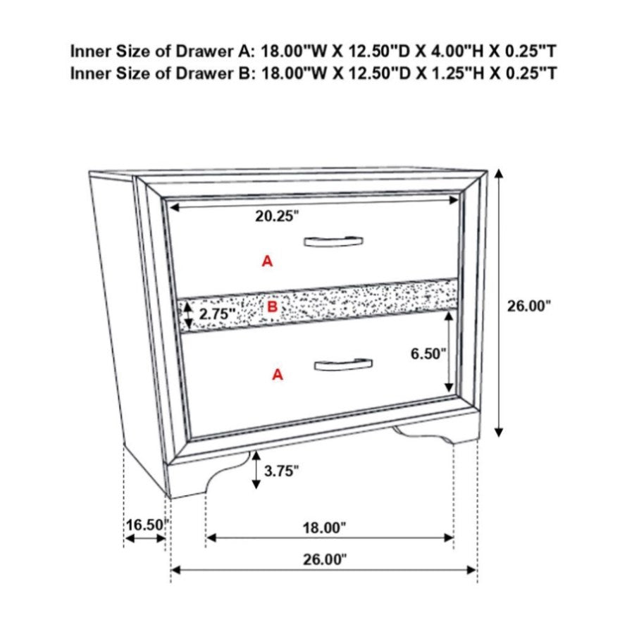 This nightstand will add a sophisticated touch to your bedroom, with clean line design and molding details that enhance a contemporary style. Features 2 storage drawers and a hidden jewelry drawer with a felt-lined interior, so you can organize all kinds of daily necessities. Full extension glides ensure smooth drawer operation. With contrasting sparkling rhinestone trim, it boasts an elegant style that will bring you a perfect sleek design for your home.