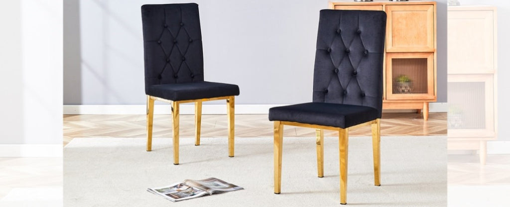 2 piece dining chairs.The gold metal legs complement the black velvet, showcasing a perfect blend of W1151131994
