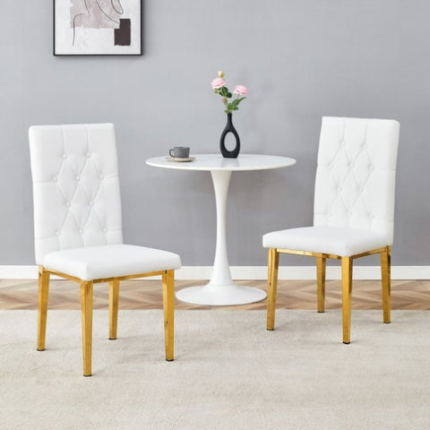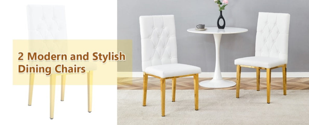 Stylish Metal Legs: The gold metal legs contrast beautifully with the white PU material, enhancing the chair's modern feel and providing sturdy support.