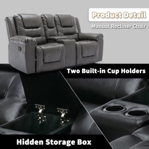 2 Seater Home Theater Recliner Manual Recliner Chair with a Storage Box and Two Cup Holders for WF323619AAE