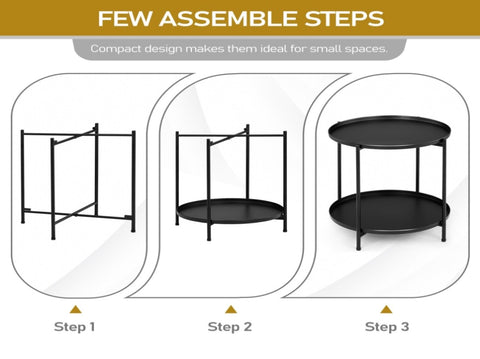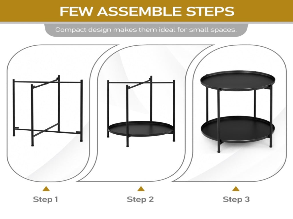 Enhance your indoor and outdoor spaces with this versatile 2-tier patio side table. Designed with removable trays for convenience, this compact table is perfect for small spaces in your living room, bedroom, garden, or balcony. Crafted from durable, powder-coated metal, it is weather-resistant, waterproof, and built to last. Adjustable feet ensure stability on uneven surfaces while protecting your floors from scratches. Lightweight and portable, this end table is easy to assemble and maintain, making it a functional and stylish addition to your home decor.