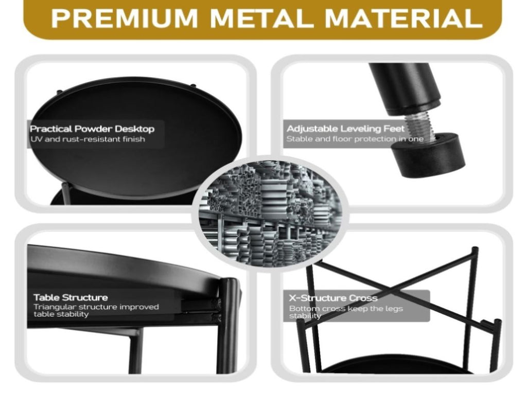 3. Weather-Resistant & Durable: Made from powder-coated metal, this side table is resistant to rust, peeling, and weather damage, ensuring long-lasting performance for outdoor and indoor use.