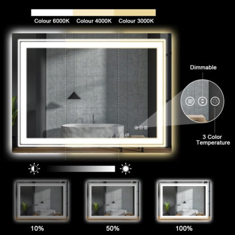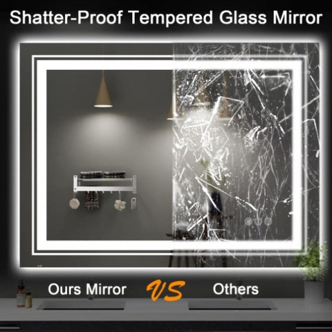 [Safe & Durable]: UL-certified components with protective casing. LED lifespan: 50,000+ hours (45+ years at 3 hours daily use). Copper-free silver mirror with far lower corrosion rates than standard mirrors. Features 5mm tempered glass for shatterproof, explosion-resistant, and long-lasting safety.